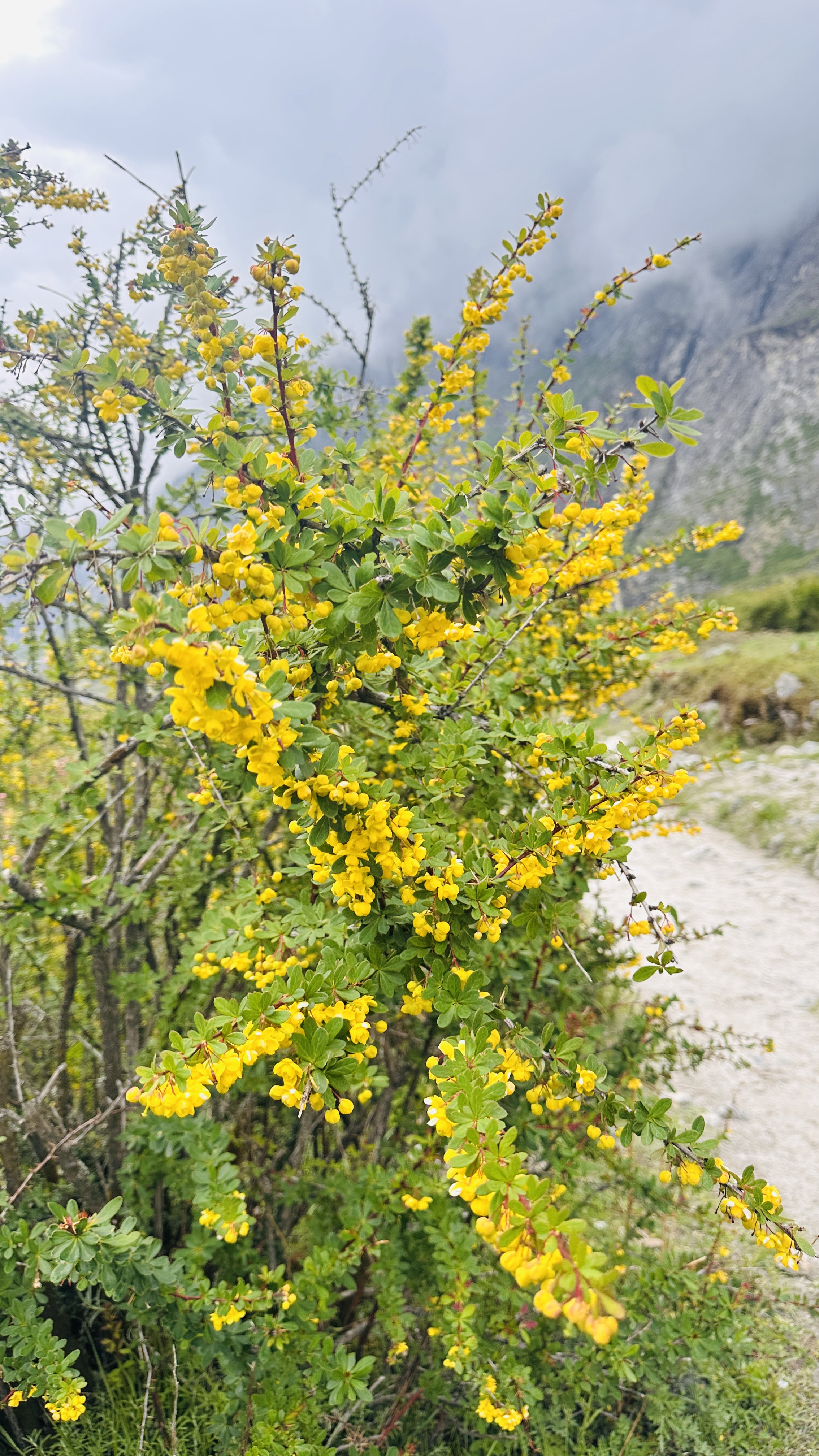 कुनैकुनै मोडमा सेता फूलहरूले झुलिरहेको देखिन्थ्यो, सम्भवत: जंगली चेरी वा कराउँका प्रजातिका। कतै पहेँलो फूलहरूले हरियालीमा चमक थपिरहेका थिए। ती स–साना फूलहरू हेर्दा लाग्थ्यो, उनीहरू शान्त रूपमा बोलिरहेका छन्—"हामी यही छौं, तिमीलाई स्वागत गर्न।"